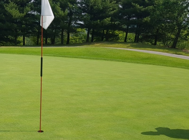 홀(컵)이 있는 평탄한 지역 일대를 뜻한다. 페어웨이에 비해 잔디를 짧게 깎아서 관리한다.