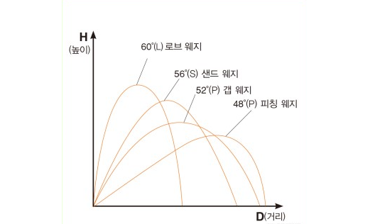 25. 일반적으로 54도~58도 로프트로 생산되며 홀컵까지 50~80m의 거리에서 사용합니다.