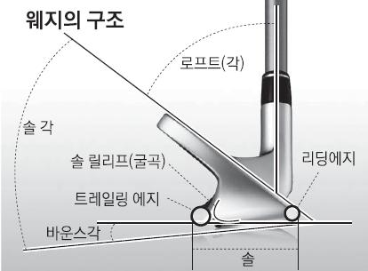 2. 측면에서 바라본 클럽의 헤드 모양이 V자 모양으로 되어있어서 쐐기로 통칭되며 모래나 잡풀에 놓인 골프공을 쉽게 쳐낼 수 있도록 이런 형태를 갖고 있지요.