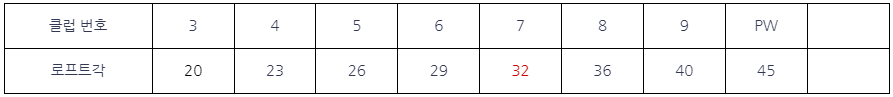 1번 모델의 7번 아이언의 로프트는 출시 당시 32도였지만 최근 출시된 8번째 모델의 7번 아이언의 로프트는 30도로 출시됩니다.